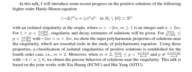 报告题目二:Super polyharmonic property and asymptotic behavior of solutions to the higher order Hardy-Henon equation near isolated singularities