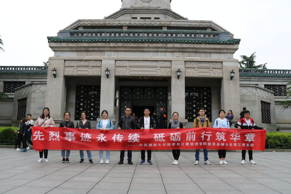 4月15日,中共新葡萄8883官网AMG数学与计量经济学院委员会硕士第三党支部成员以“先烈事迹永传续,砥砺前行筑华章”为主题,一起参观学习了湖南省博物馆和烈士公园,了解长沙这座文化名城的厚重历史,缅怀在中国革命斗争中英勇就义、做出伟大贡献的先烈们。让支部成员在不断地学习中深入对党的理解,明确自己党员肩上的责任。