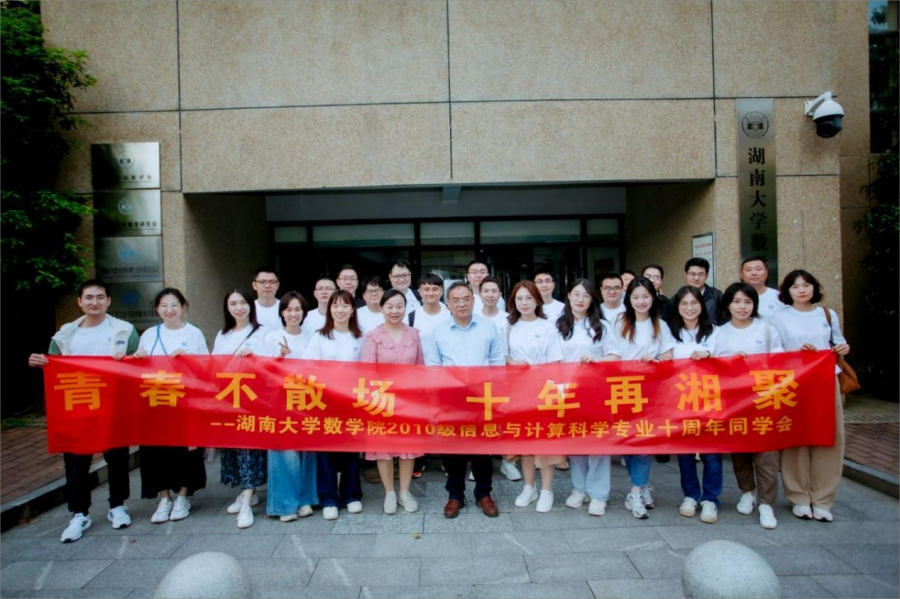 4月20日,新葡萄2000级信息与计算科学专业校友荣返母校,举办以“青春不散场,十年再湘聚”为主题的本科毕业十周年同窗聚会活动,三十余位校友怀揣着对母校、老师、同学的浓浓深情欢聚一堂,畅叙友谊,学院党委书记蒋月评教授、任课老师姚兰副教授应邀参与本次聚会。