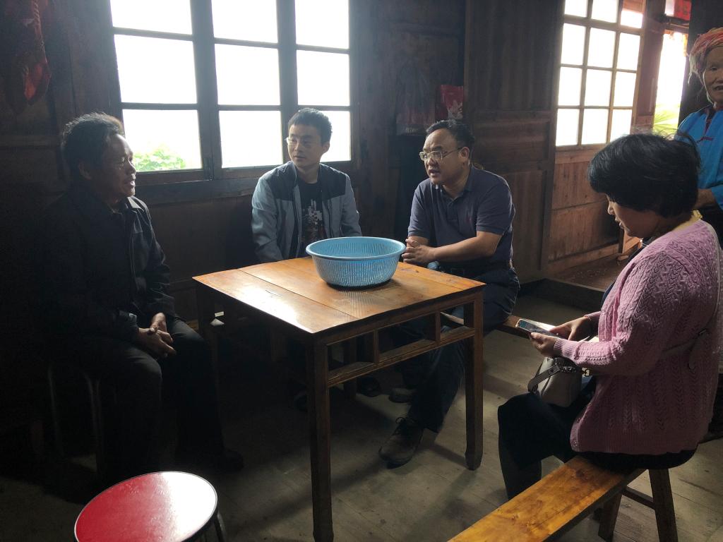 在与教工第二党支部结对的杨庭内家,蒋月评院长了解了杨庭内妻子的病情情况及孙子、孙女学习情况,为杨庭内老人送上扶持基金。