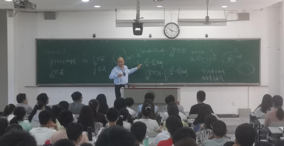 扈老师慈眉善目、憨态可掬,虽然是第一次来到新葡萄8883官网AMG教室上课,但并不让人觉得陌生。上课铃声响起,扈老师在简要的自我介绍后直接切入授课内容。他从通俗易懂的物理背景引入高斯公式和斯托克斯公式,极大地激发学生的求知欲。授课过程中,扈老师声音洪亮、逻辑清晰、讲授娴熟、全程板书,师生听得津津有味,不知不觉,下课铃声响起。