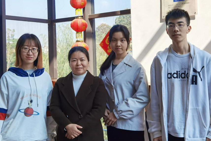 获奖队伍许筱颖、张菘淳、张心宇与晏华辉老师合影。