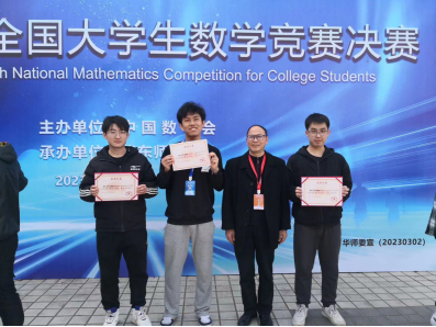 经过激烈的角逐,5名参赛同学全部获奖,其中在数学类高年级组中,2019级本科生范则鸣同学荣获国家一等奖,王泓烨同学荣获国家二等奖;在数学类低年级组中,2020级本科生黄晓铭同学荣获国家二等奖;在非数学类组中物理2002班的赵宇航同学荣获国家二等奖,统计1901班的谈杰同学荣获国家三等奖,向各位获奖同学表示祝贺!