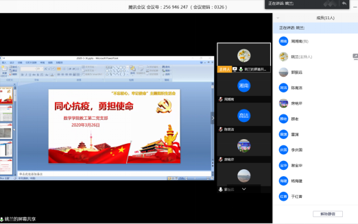 3月26日下午,中共新葡萄8883官网AMG党委教工第二支部响应学院党委号召,通过腾讯会议在线上开展“同心抗疫,勇担使命”主题党日活动。